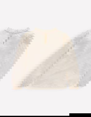 Frill Sleeve Slub Top-Soft Ivory/College Navy