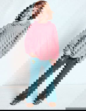 Frill Neck Appliqué T-shirt-Vintage Pink Unicorn
