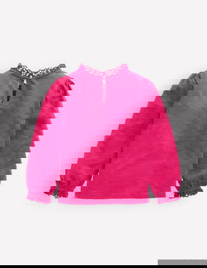 Ribbed Long Sleeve T-shirt-Rose Pink