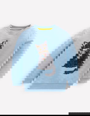 Long Sleeve Appliqué T-shirt-Sorbet Pink Cat