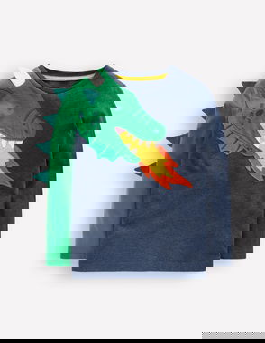 Fun Appliqué T-shirt-Blue Marl Dragon Fire