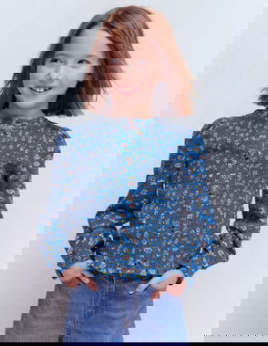 Smocked Jersey Blouse-Delft Garden Flower