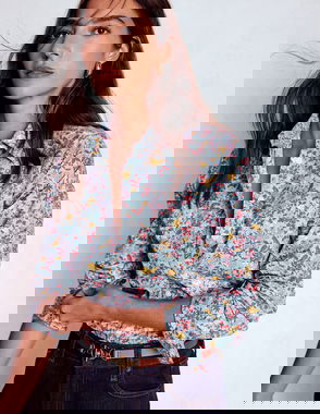 Sienna Cotton Shirt-Windward Blue, Delicate Meadow
