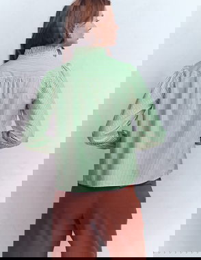 Esme Smocked Detail Frill Top-Highland Green, Ivory Stripe