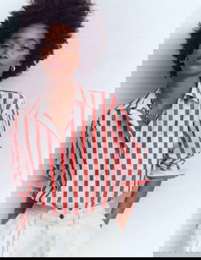 Sadie Relaxed Cotton Shirt-Ivory And Salsa Stripe