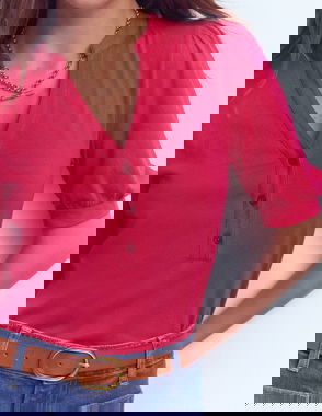 Short Sleeve Open Neck Henley-Pomegranate