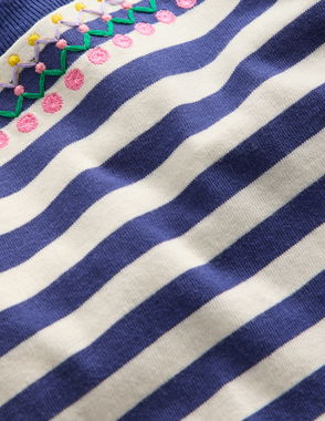 Relaxed Embroidered T-shirt-Navy Stripe