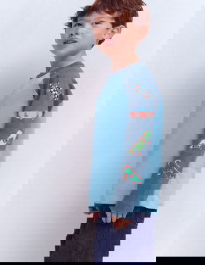 Long Sleeve Hotchpotch T-shirt-Blue/Green/Orange