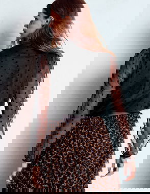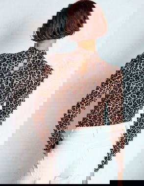 Puff Shoulder Jersey Top-Multi, Cheetah Pop