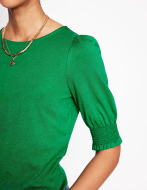 Short Sleeve Smocked Cuff Top-Rich Emerald