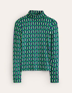 Printed Tie Neck Top-Green Tambourine, Geometric