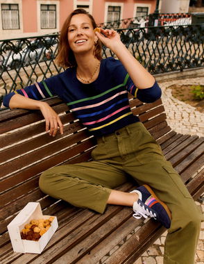 Ella Long Sleeve Breton-French Navy And Rainbow