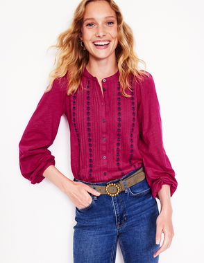 Alicia Button Down Top-Flame Scarlet, Diamond Terrace