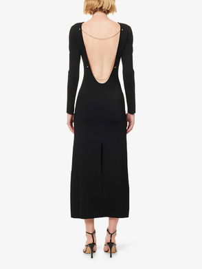 Open-Back Chain-Embellished Stretch-Woven Midi Dress