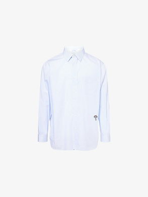Spread-Collar Brand-Embroidery Cotton Shirt
