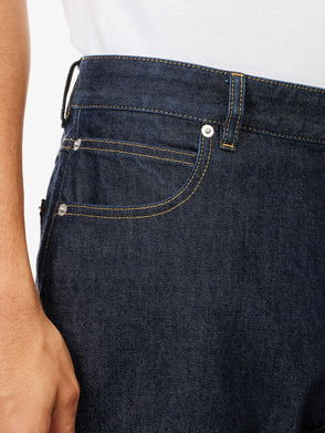 Contrast-Topstitch Wide-Leg Denim Jeans
