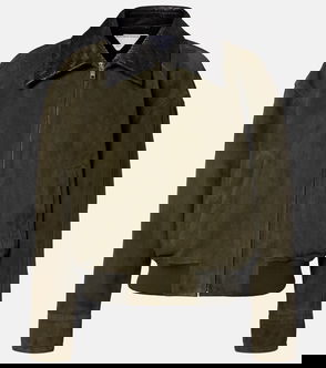 Contrast-Collar Relaxed-Fit Suede Jacket