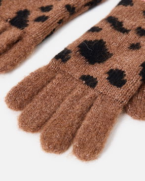 Brown & Black Spotty Animal Print Knitted Gloves