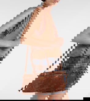 Carnaby Large Suede Handbag, Light Pastel Brown
