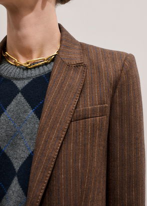 Sharp Shoulder Pinstripe Blazer Chocolate/Caramel