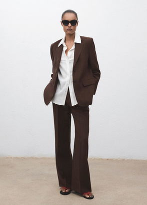 Double Breasted Tailored Fit Cotton Corduroy Suit Jacket, Brown