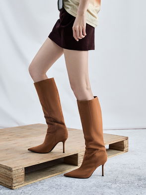 Faux Suede Pointed-Toe Stiletto-Heel Knee-High Boots