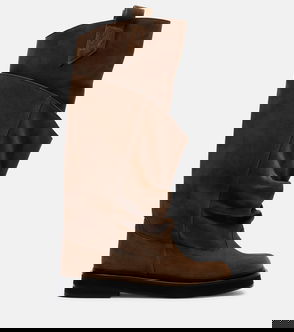 Soria Suede Block Heel Calf Boots, Pastel Brown