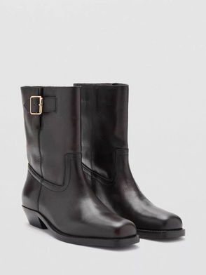 Marty Leather Buckle Ankle Boots, Dark Brown