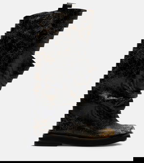 Bird Faux Croc Kitten Heel Ankle Boots, Dark Brown
