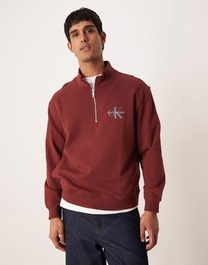 Jeans Monologo Quarter Zip Jumper In Burgundy