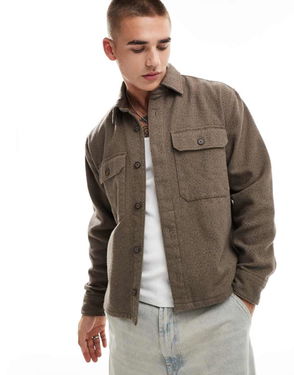 Abercrombie & Fitch Dobby Flannel Overshirt In Brown