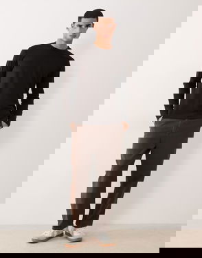 Premium Wool Mix Long Sleeve T-shirt In Rich Brown