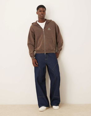 Abercrombie & Fitch Chest Logo Zip Hoodie In Brown
