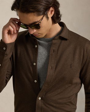 Merino Wool Open-Collar Polo Shirt In Chocolate Brown