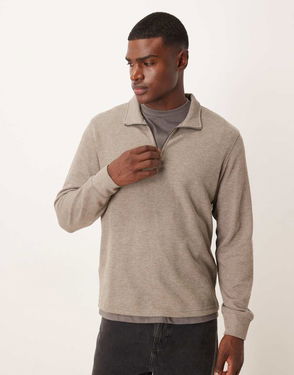 Interlock Open-Collar Polo Sweatshirt In Light Brown