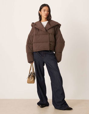 Jeans Oversized Boxy Puffer Jacket In Chocolate Brown