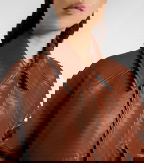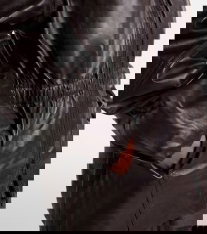 Luxe Shearling Leather Mix Swing Coat Chocolate