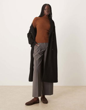 High Neck Light Knit Jumper In Caramel