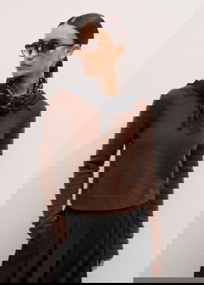 Cashmere Relaxed Balloon Sleeve Jumper + Snood Chestnut Brown