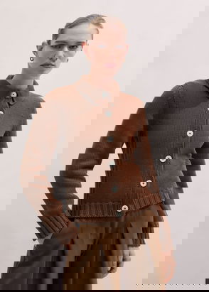 Cotton Bracelet Sleeve Cropped Cardigan Warm Chocolate