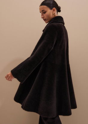 Luxe Shearling Leather Mix Swing Coat Chocolate