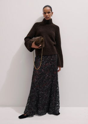 Relaxed High Neck Bouclé Jumper Warm Chocolate