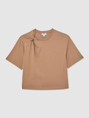 Cotton Twist-Detail Boxy T-Shirt In Taupe Brown