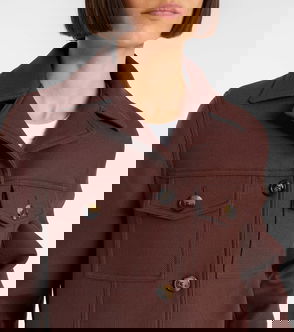 Logo-Patch Collared Cropped Wool-Blend Jacket