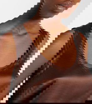Asymmetric Sleeveless Top With Hardware Detail In Brown