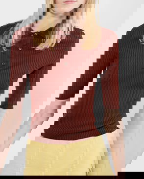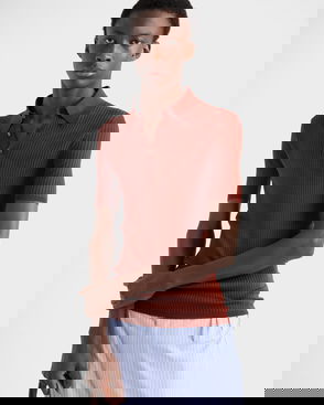 Ribbed Knit Cotton Polo Shirt