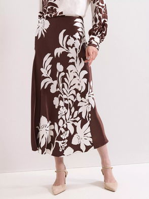Hattie Floral Satin Skirt, Brown