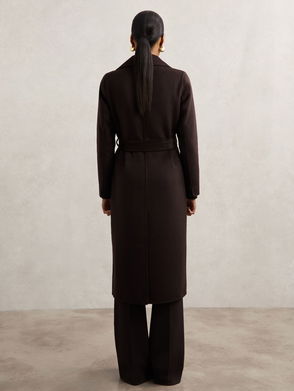 Wool Maxi Belted Trench Coat With Side Splits In Brown