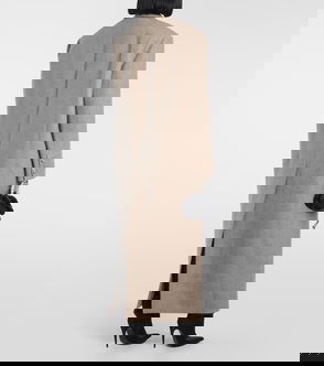 Wool Belted Maxi Coat With Funnel Neck In Brown