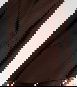Wool Car Coat In Brown With Volume Sleeves And Contrast Cord Collar